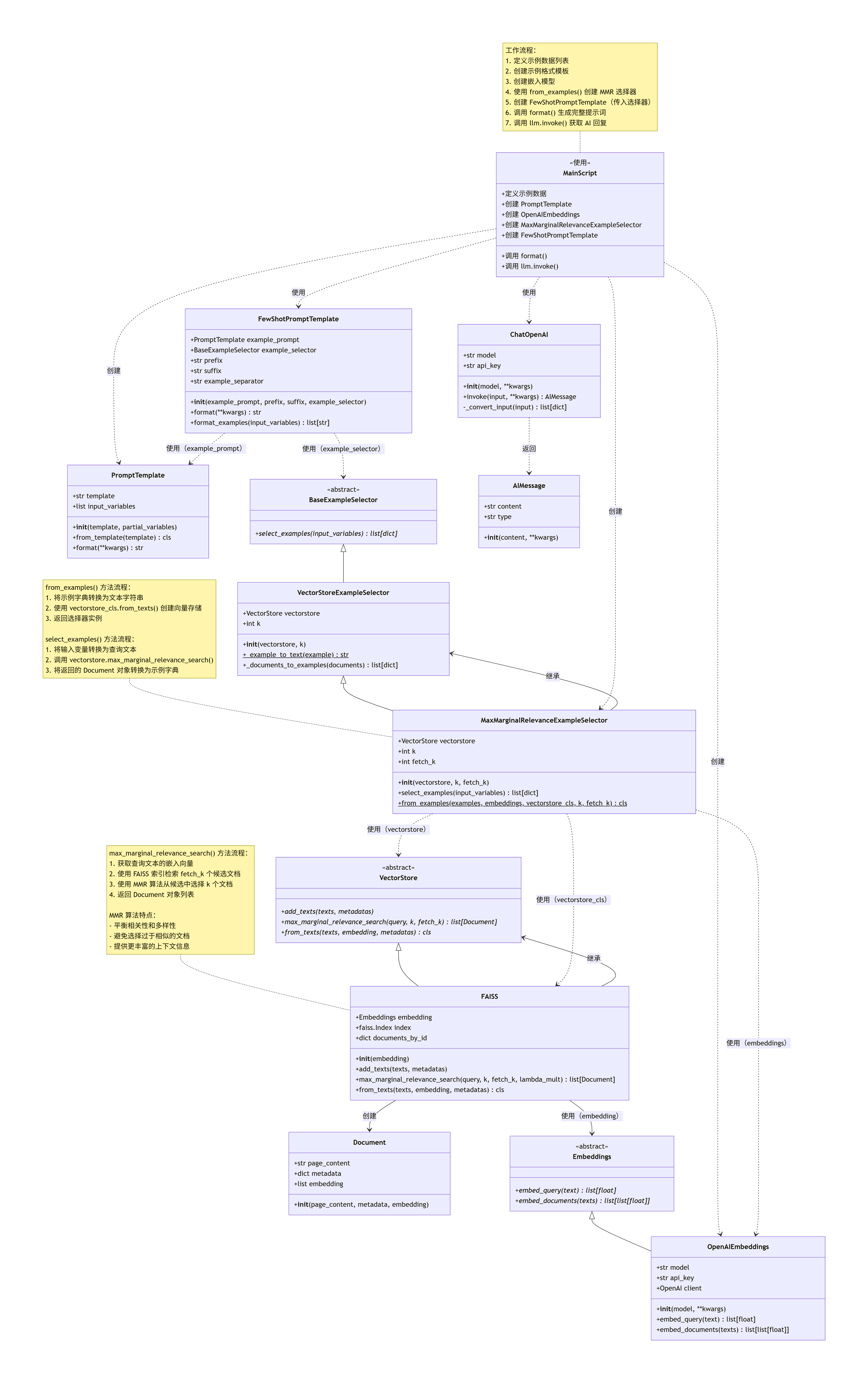 FewShotPromptTemplate时,将 selector 作为example_selector传入即可。 - 模板会自动调用 selector,根据实际输入来动态选择合适的 few-shot 示例。